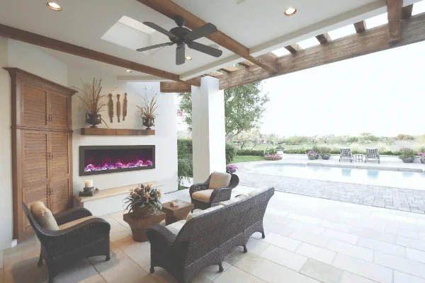The BI-60-SLIM-OD Panorama Slim Smart Electric Fireplace is designed to offer maximum flexibility and style for any indoor or outdoor space. With a slim depth of just 6 ¾ inches, this modern fireplace is ideal for both new construction and renovation projects. The BI-60-SLIM-OD allows for versatile installation, offering a frameless, edge-to-edge viewing area with finishing materials that can be applied right up to the glass. Alternatively, the black trim provided can be used for a sleek finish. This fireplace’s vibrant, multi-color flame effects, combined with high-intensity LED lighting and 5000 BTU of heat, create the perfect blend of form and function.