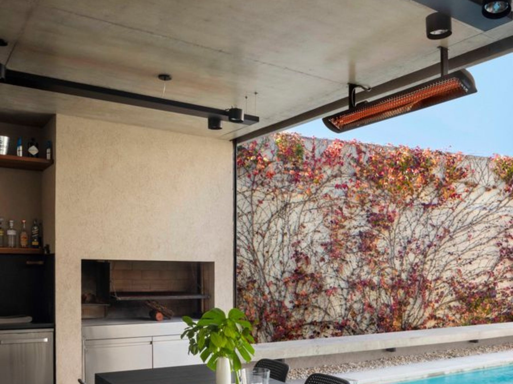 Crafted with a sleek black powder-coated steel housing, this heater features quartz infrared elements and a parabolic reflector for even heat distribution and reduced glare. Designed to withstand outdoor conditions, it maintains performance even in winds up to 8β10 mph.