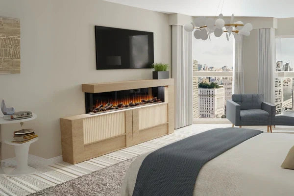 The ULT100 Electric Fireplace brings a striking blend of elegance, efficiency, and modern technology to larger living spaces. With a commanding width of 100 inches, this fireplace becomes the centerpiece of any room. Offering both 1,500 W and 2,500 W heating options, the ULT100 is capable of producing up to 8,530 BTUs, ensuring ample warmth even in expansive areas. Its dynamic flame effect, coupled with tumbled glass media and rhythmic logs, creates a mesmerizing and realistic ambiance. A built-in thermostat, multi-function remote, and automatic shut-off add both convenience and safety. This hardwired model is perfect for those seeking a high-performing, stylish, and reliable heating solution for their home.