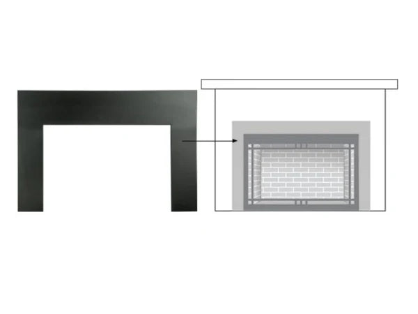 It neatly covers the gap between the fireplace insert and the surrounding surface while maintaining a clean, finished look.