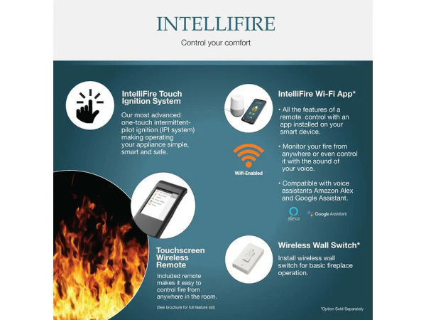 IntelliFire Touch® Ignition: Advanced intermittent-pilot ignition system with easy remote or wall switch control.