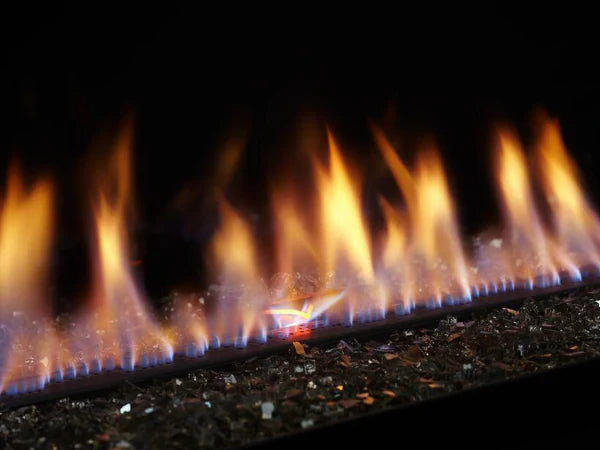 Included glass media adds visual depth and shimmer to the firebed, creating an upscale ambiance. -