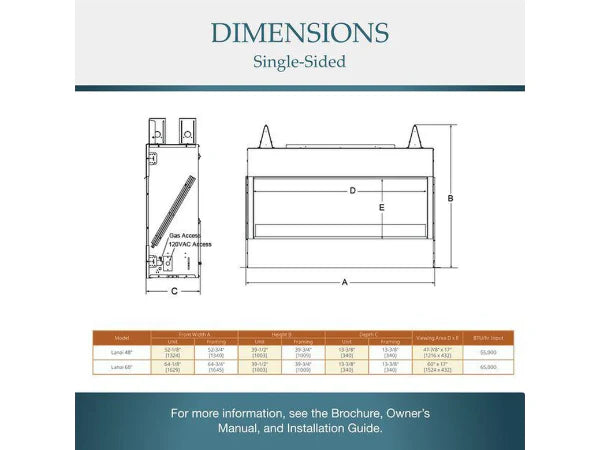 - Expansive Viewing Area: A wide 47-7/8" x 17" glass display enhances flame visibility and elegance.