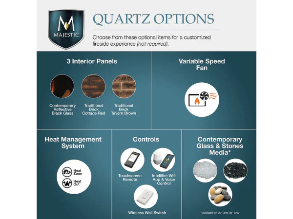 Bring timeless style and reliable heat to your home with the Majestic Quartz Platinum 36" Propane Gas Fireplace. Designed with traditional elegance and advanced heating performance, this top/rear vent unit offers exceptional versatility for various installation applications.