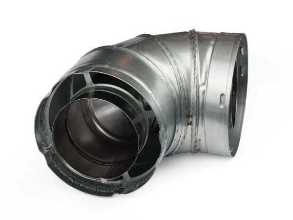 The Majestic SLP 4" 90-Degree Elbow is a durable and reliable vent pipe fitting designed to provide a smooth 90-degree directional change for Majestic SLP direct vent gas fireplace venting systems. Constructed from heavy-duty steel and finished in matte black, this elbow ensures safe and efficient exhaust flow while maintaining proper clearances and airtight connections.