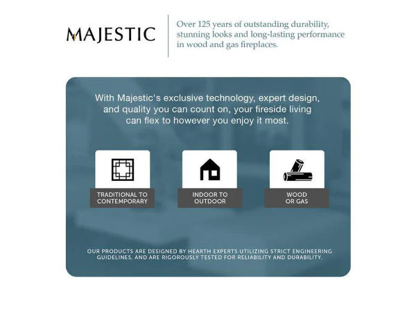 Requires connection to Majestic’s SL300 venting components (sold separately) for safe operation.
