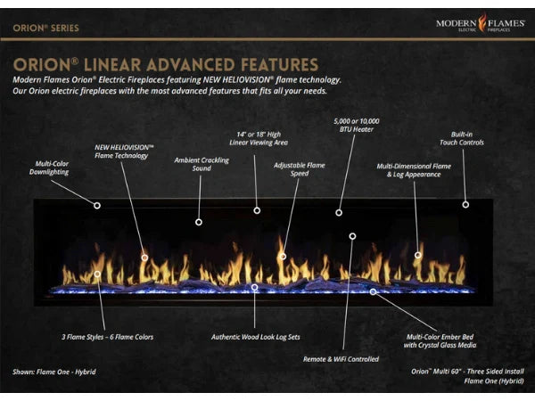 Modern Flames Orion Multi 120" Heliovision Built-in/Wall Mounted Virtual Linear Electric Fireplace