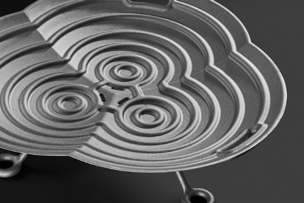 The Lotus is a practical yet stylish fire bowl designed by Roderick Vos, ideal for patio heating. Its distinctive design features a basic shape that repeats three times, creating 'ridges' that prevent logs from slipping. Available in two models—Lotus Low and Lotus High—this fire bowl not only serves as a functional heating element but also adds a decorative touch to any garden or outdoor space.