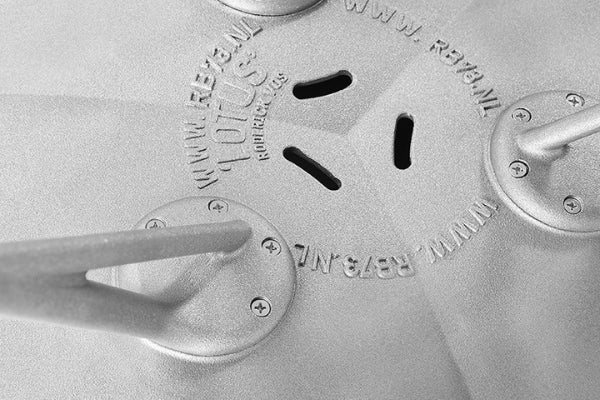 The Lotus is made from blasted untreated cast aluminum, offering durability and a modern aesthetic.
