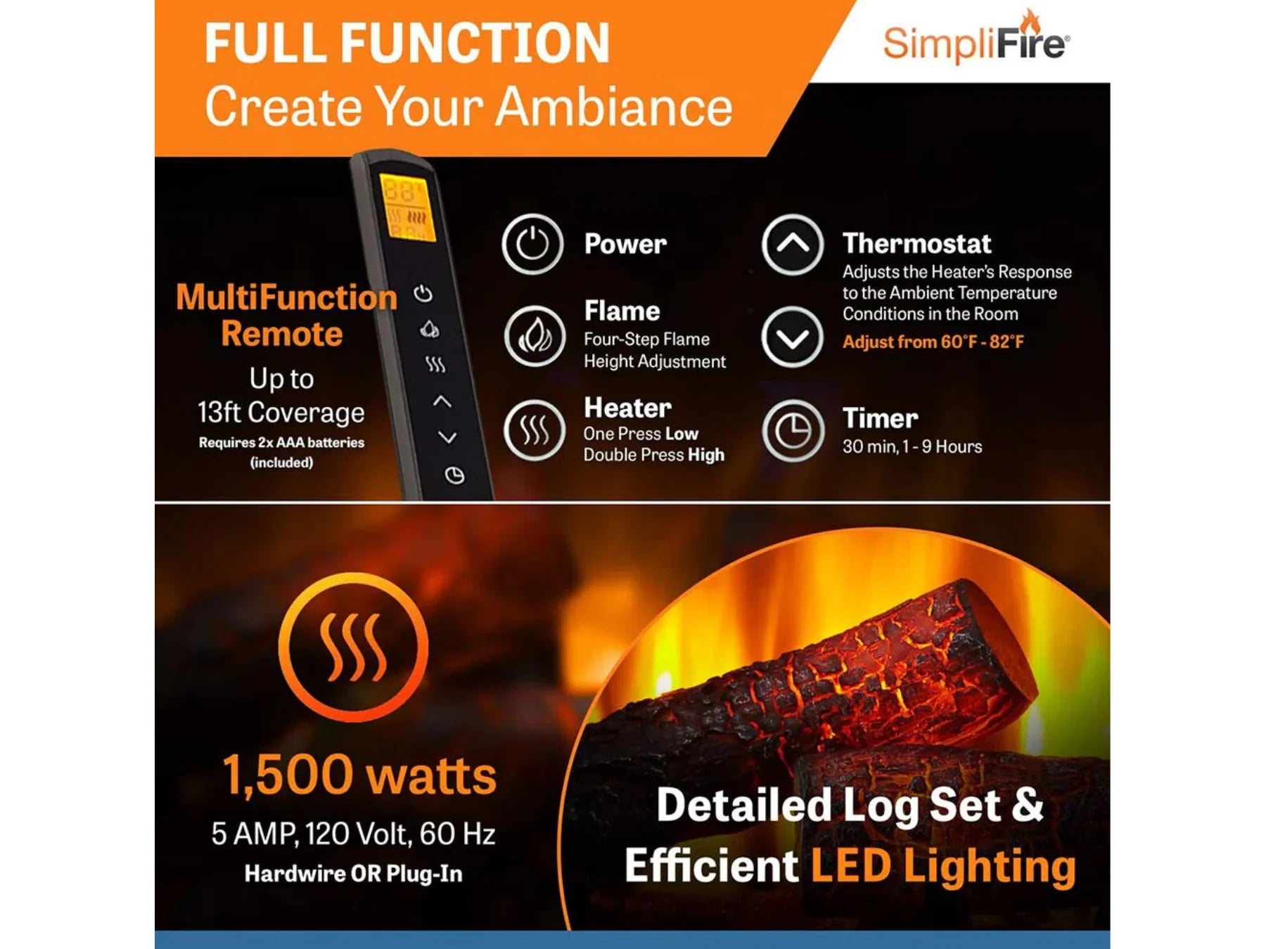The SimpliFire 35-inch Built-In Electric Fireplace is a compact yet stylish heating solution designed to add warmth and modern ambiance to smaller spaces. Built for recessed installation, this unit installs flush into the wall, delivering a clean, built-in look that complements contemporary, transitional, and traditional interiors.