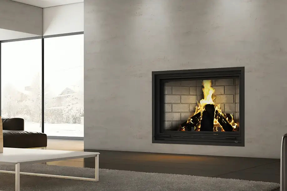 The Frontenac fireplace, when equipped with these panels, reduces particulate emissions by 70%, meeting the strict standards set by the EPA for cleaner wood-burning appliances.